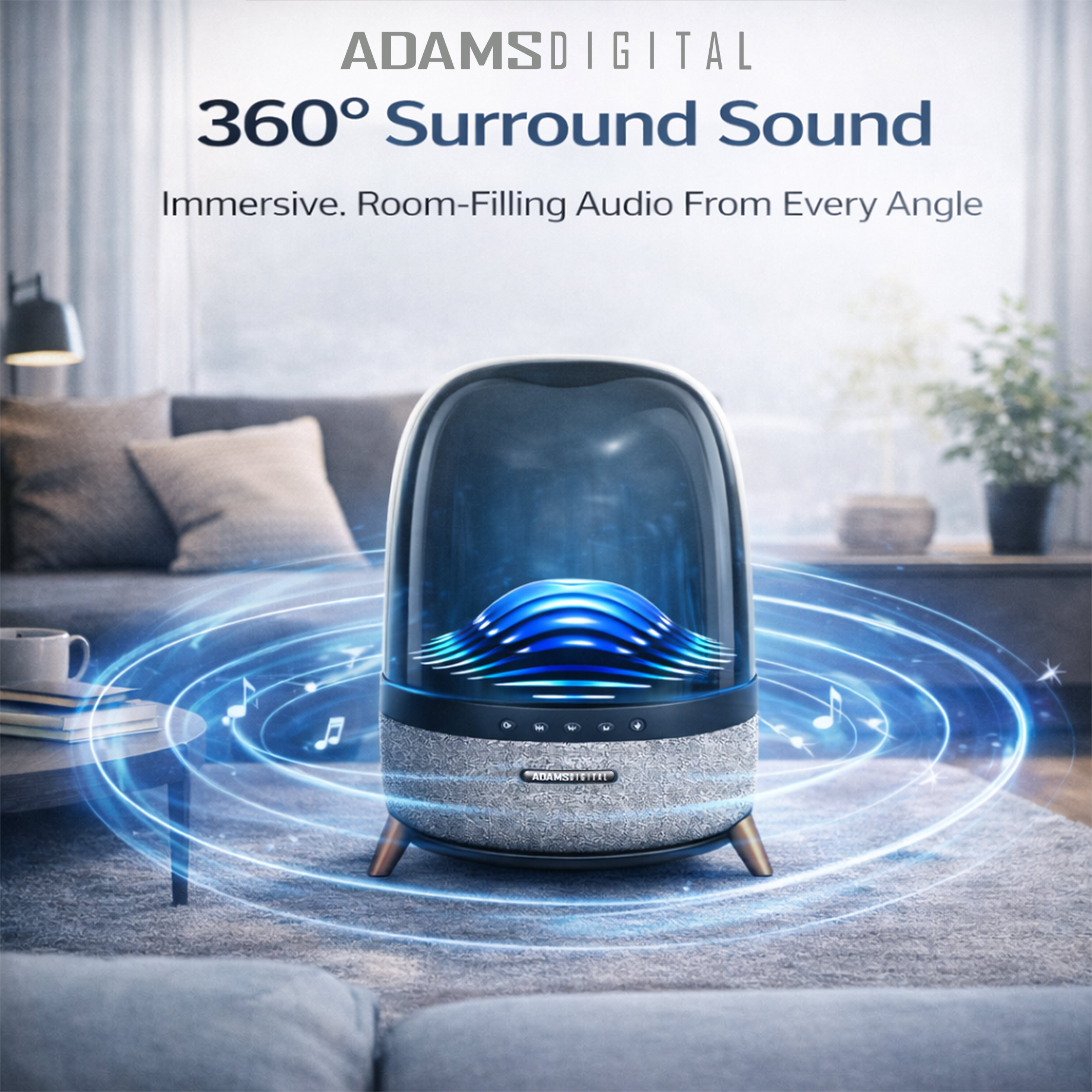 Bring immersive sound and atmospheric lighting into your home with the AD3 Aura Studio 3 by Adams Digital.