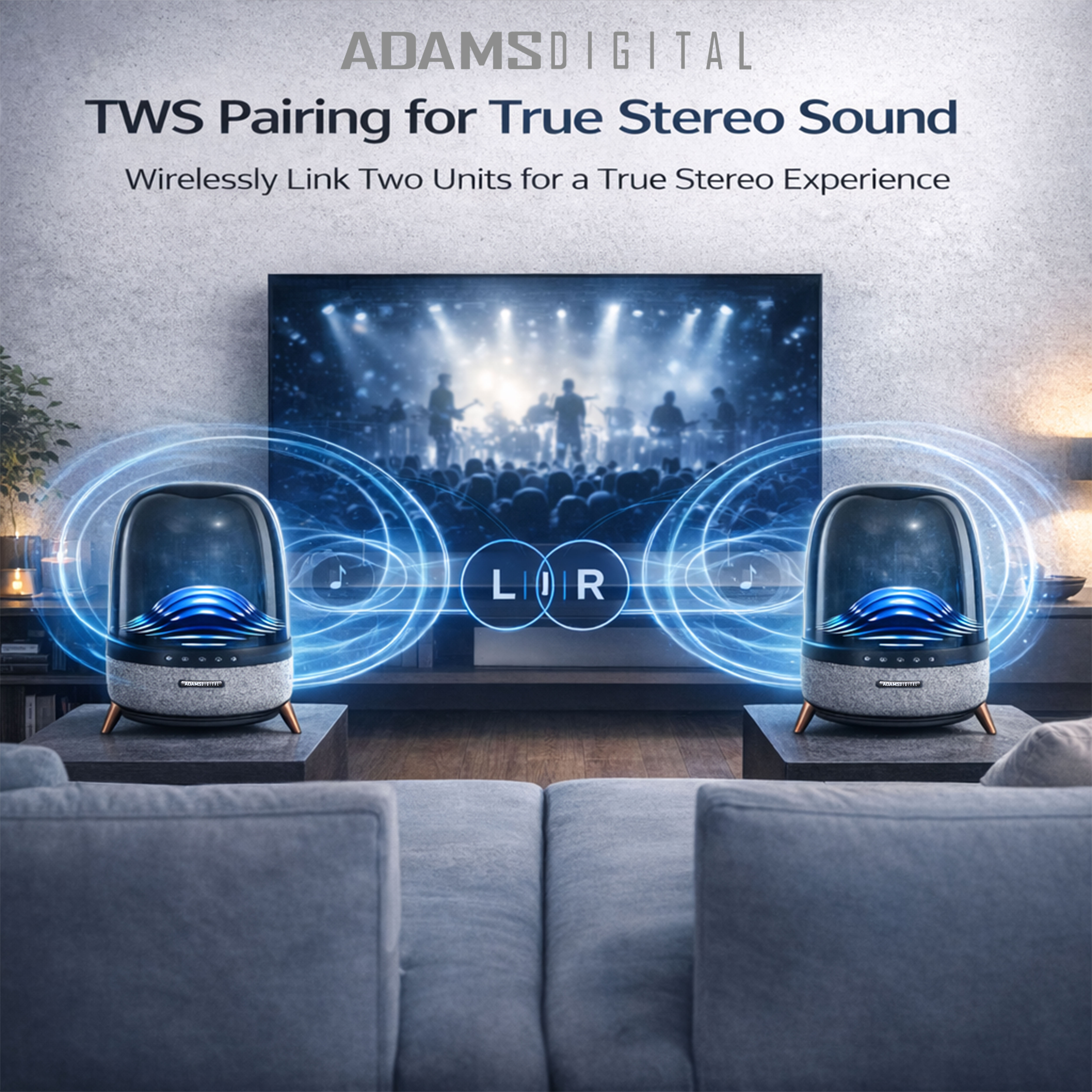 Support for TWS (True Wireless Stereo) allows you to wirelessly pair two identical units, creating true left-and-right channel separation for a wider, more immersive stereo soundstage.