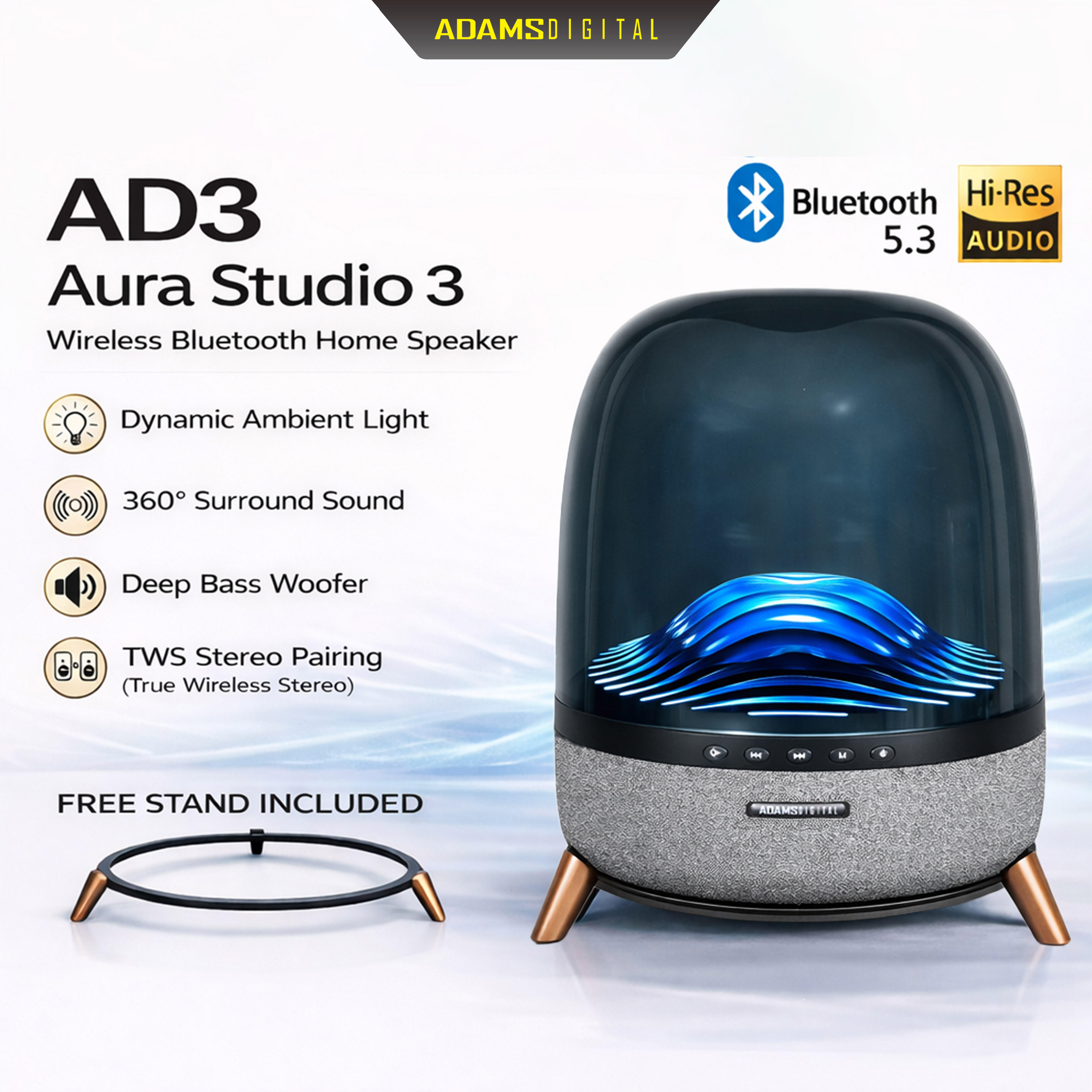 Bring immersive sound and atmospheric lighting into your home with the AD3 Aura Studio 3 by Adams Digital.