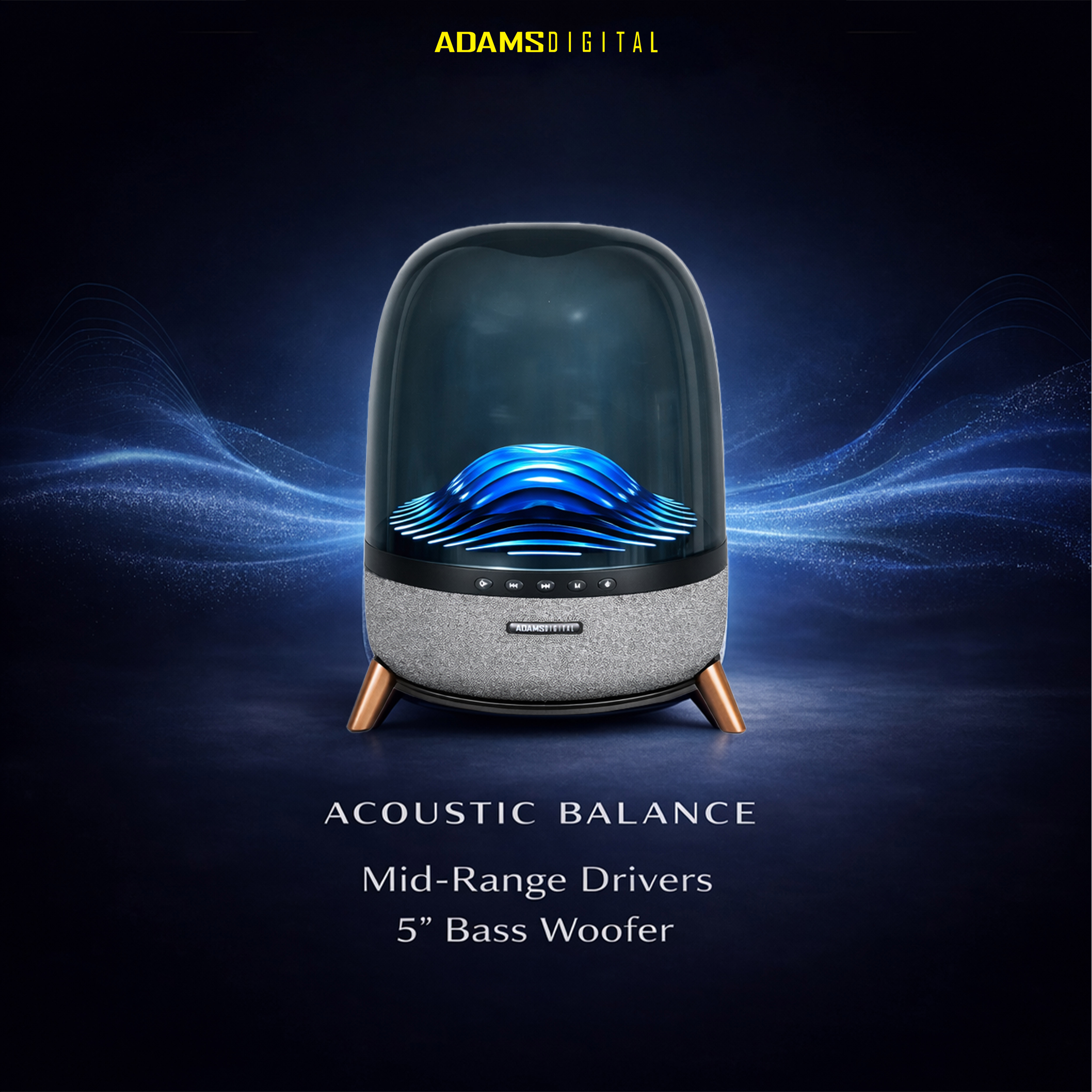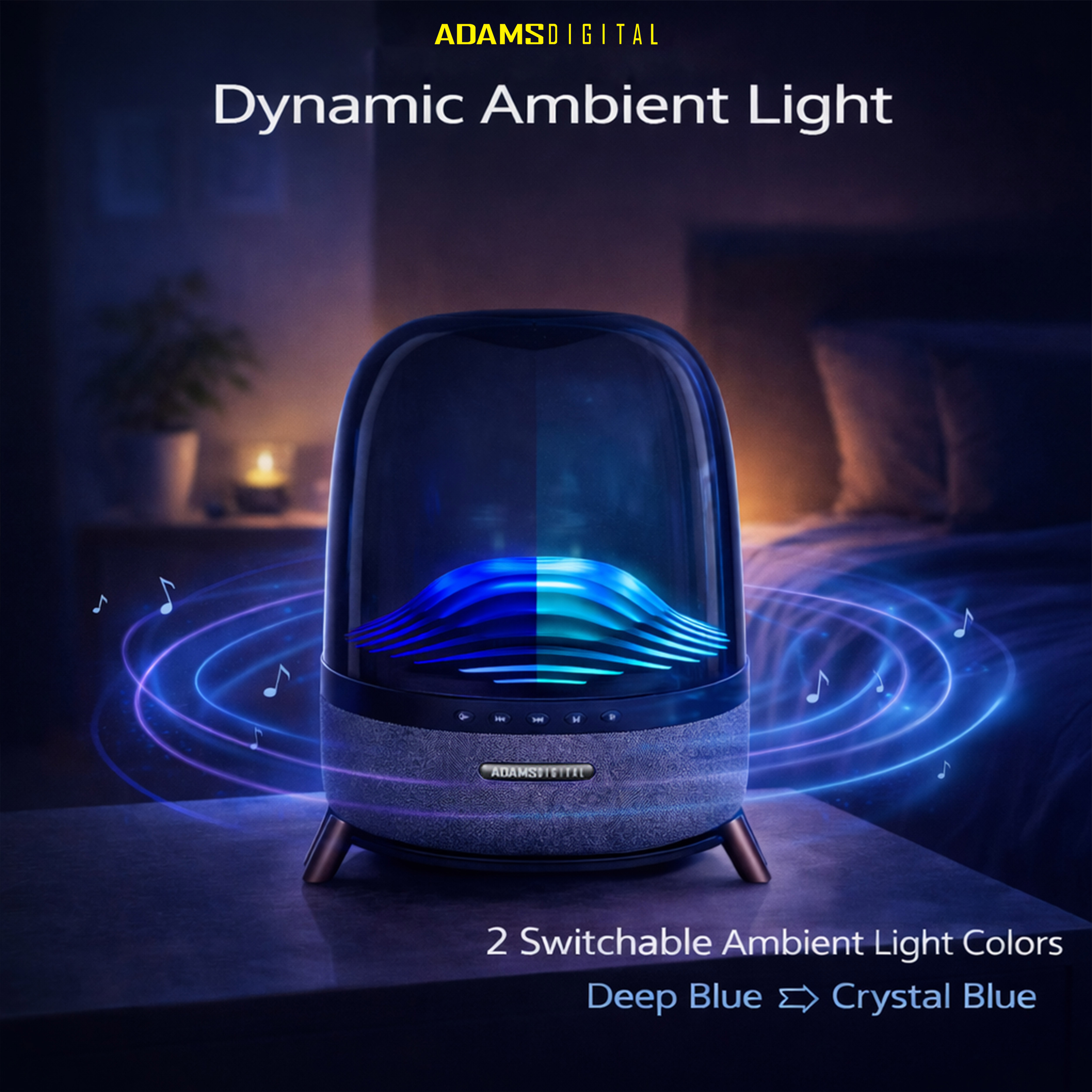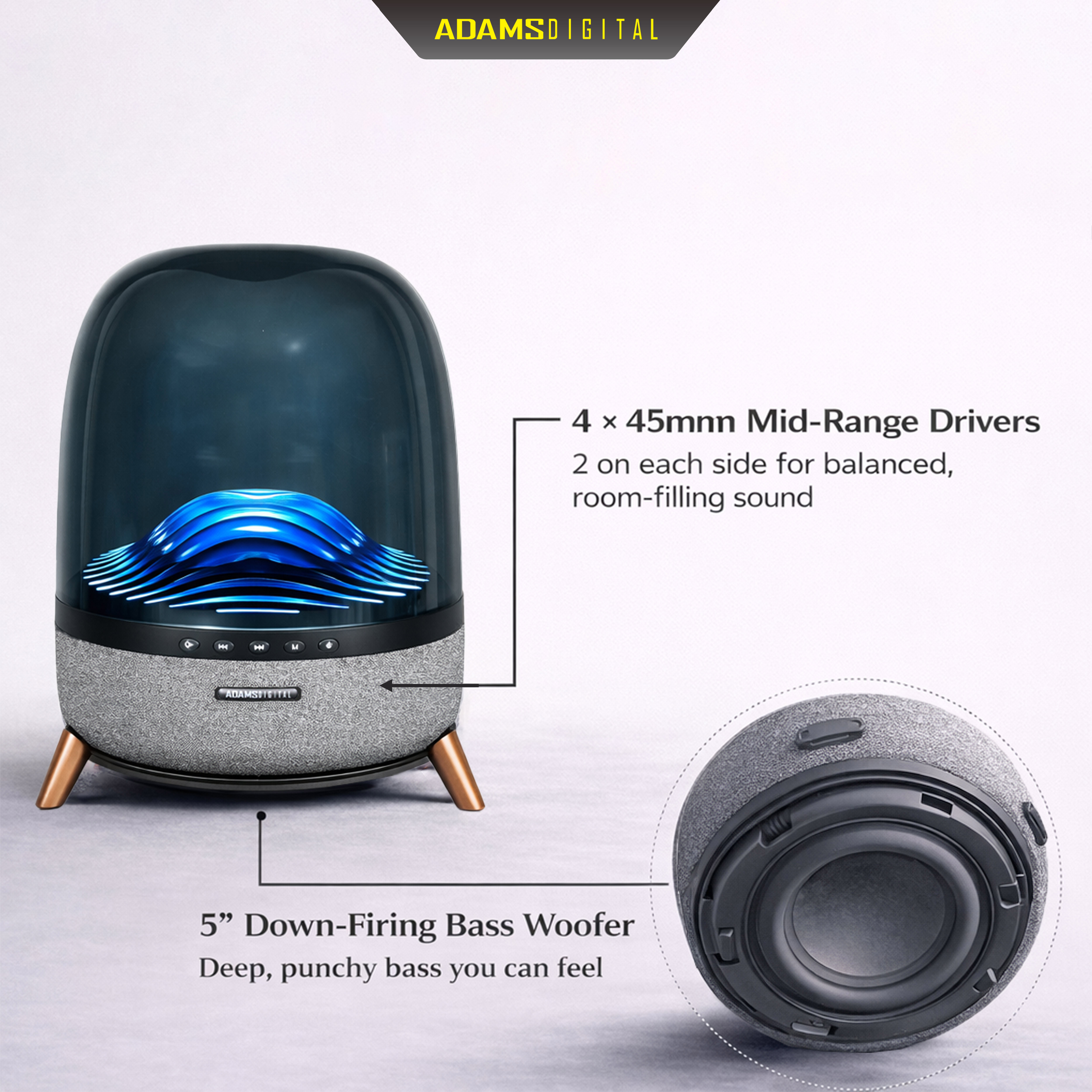 Adams Digital AD3 Aura Studio 3 Wireless Bluetooth Home Speaker Transparent Home Speaker with Ambient Light