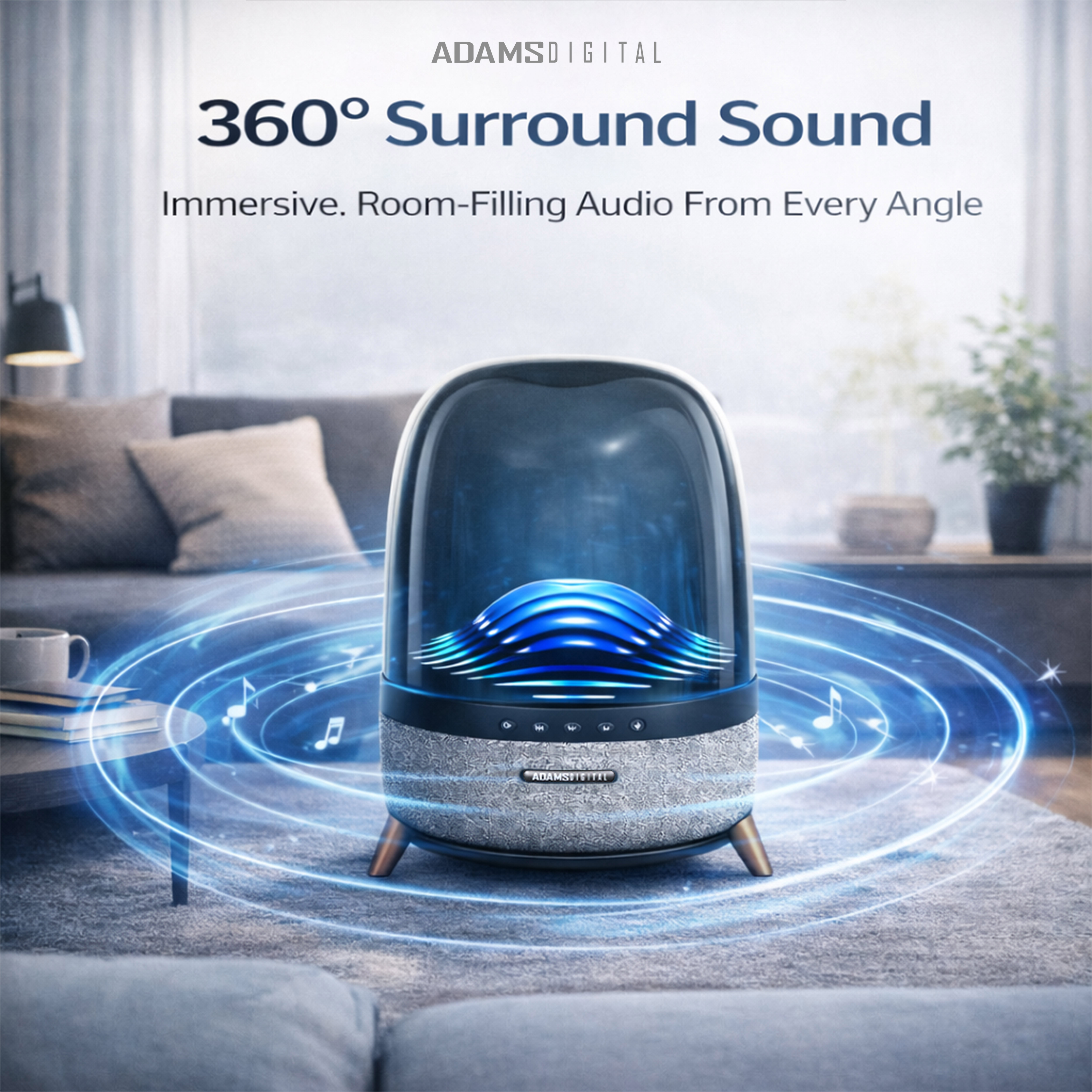 With its sculpted transparent body, fabric-wrapped base, and included stand, AD3 is designed to look as good as it sounds, making it an ideal centerpiece for living rooms, bedrooms, or entertainment setups.